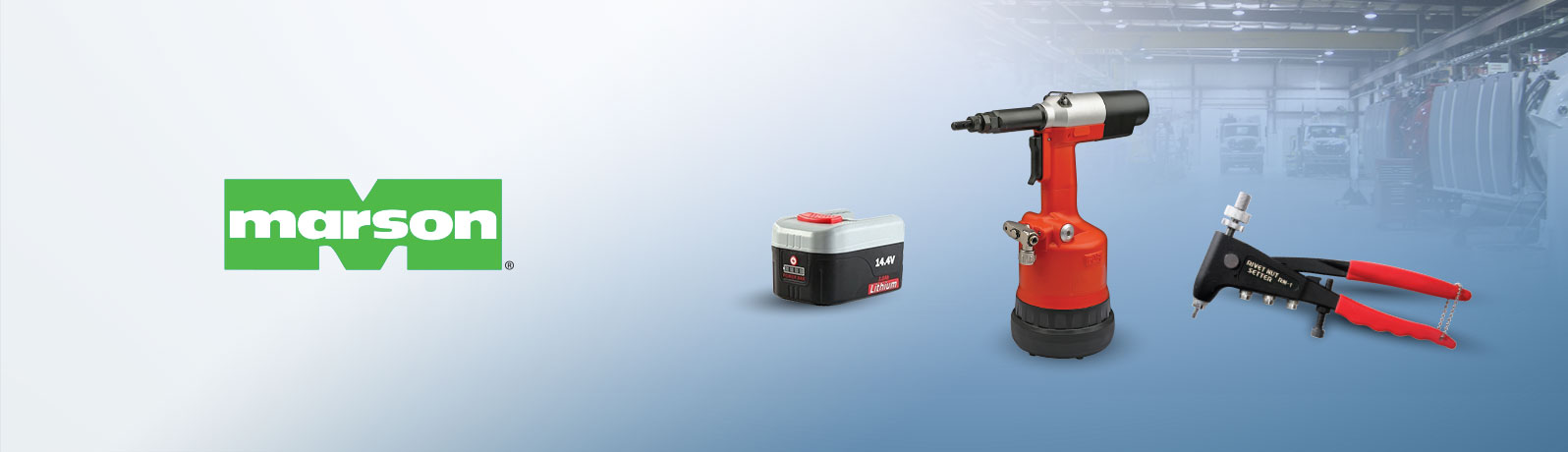 Marson also offers a complete range of high-quality manual and pneumatic installation tools to complement the range of rivets. From hand-riveters to heavy-duty pneumatic tooling, Marson has the right tool for the job.
