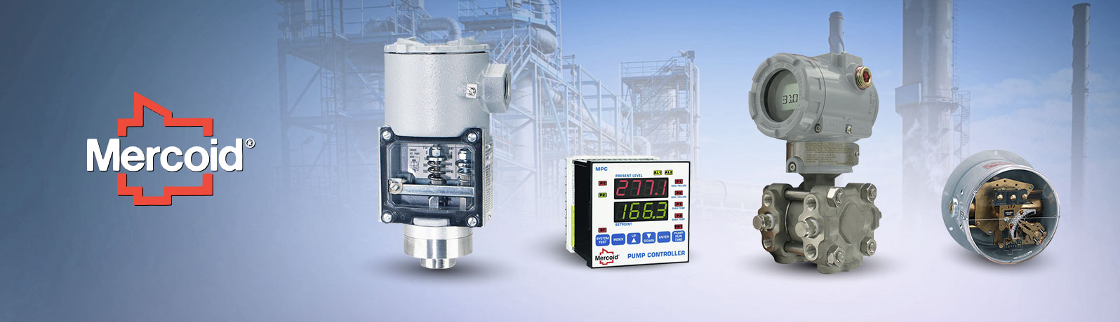 Mercoid Controls™, a division of Dwyer Instruments, Inc, produces a broad range of pressure, temperature, and level controls for use in the heavy industrial, petrochemical, and electrical utility plants. Established in 1916, Mercoid has been serving the industry for over 100 years. Its joint with Dwyer Instruments, Inc., combines more than 150 years of experience to produce an even stronger and more resourceful company to serve the customers' instrumentation and control needs. Full line catalog of Industrial controls, including pressure-switches, transmitters, flowmeters, flow-switches, pitot tubes, level-switches, RTDs, temperature switches, and valves, is available at Mega Depot.