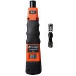 ...small blade, specifically shaped to match the respective connection elements on a connector device, located on the tip of a handle. This blade may be actuated by a spring apparatus, located inside the handle, however, there are punch down tools with no springs (they are operated purely by the physical force). The main purpose of this device is to place copper wires (telephone, internet, etc.) in a specialized connector block, effectively punching it in, and cutting off any excess wire. This tool offers a convenient way to create, fix, or rewire your connections. Mega Depot offers a wide range of punch down devices, all at the lowest prices. Choose the right tool for your application!