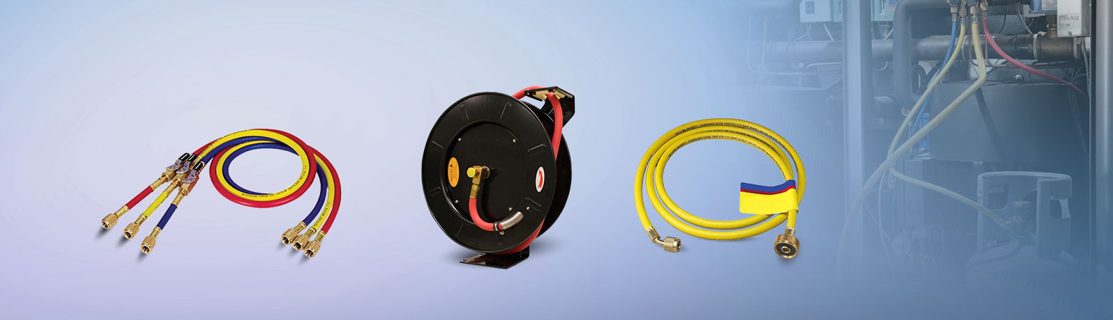Hoses are elastic tubes made of various materials that are designed to transport liquids or gases from one place to another. They are most commonly cylindrical in shape. They may vary based on their purpose, and it determines their size and material. Mega Depot offers rubber and metal hoses that may be used in a number of situations. Rubber hoses are the most common ones, they are used for almost any purpose in a majority of systems. Rubber hoses are strongly affected by internal pressure. To prevent stretching and ripping, reinforced hoses were introduced. Steel or special fiber is added to rubber, thus creating an internal structure that increases pressure resistance and makes them less flexible. There are also metal hoses that have high tear protection and are less susceptible to leaks. Additionally, such hoses are more resistant to pressure and temperatures. We offer a selection of hoses with built-in couplings, fittings, and valves that will prove themselves useful in any HVAC/R system. Find the best product for your specific application on Mega Depot. Shop with us and use only reliable equipment!
