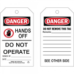 Brady 87001 5.75"x3" B-302 Tag: Danger: Hands Off Do Not Operate... Sale Price Price $57.37 List Price $61.99 You save $4.62 7.5% Free Shipping