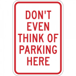 Brady 115459 18" x 12" Aluminum Don't Even Think Of Parking Here Sign Sale Price Price $61.24 List Price $66.99 You save $5.75 8.6% Free Shipping