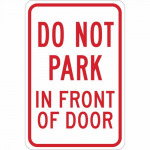 Available Options Brady 124326 18" x 12" Aluminum Do Not Park In Front Of Door Sign Sale Price Price $36.85 List Price $39.29 You save $2.44 6.2% Free Shipping