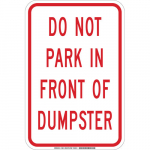 Available Options Brady 129618 18" x 12" Aluminum Do Not Park In Front Of Dumpster Sign Sale Price Price $36.85 List Price $39.29 You save $2.44 6.2% Free Shipping
