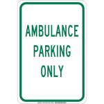 Available Options Brady 129651 18" x 12" Aluminum Ambulance Parking Only Sign Sale Price Price $36.85 List Price $39.29 You save $2.44 6.2% Free Shipping