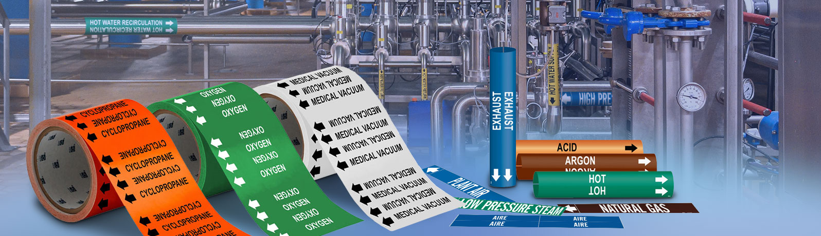 You can choose from IIAR Ammonia Pipe Markers, pipe marker accessories as well as pipe markers for acids, fire systems, gas, oil, steam, water, the list goes on. Brady pipe markers are available in different colors, materials (including plastic, polyester, vinyl, etc.), and sizes so you can find the right product for your specific application. Brady’s roll form pipe markers are perfect if you are looking for maximum visibility from all sides. The main benefit of these products is that the text is printed in different directions, in addition, there are various formats available. The products can be used indoors or outdoors, for tough environments or light-duty applications.