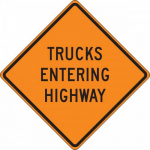Available Options Accuform FRC333FL 36" x 36" Fluorescent Vinyl Roll-Up Construction Sign: "Trucks Entering Highway"