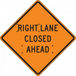 Available Options Accuform FRC315MV 36" x 36" Mesh Vinyl Roll-Up Construction Sign with Legend: "Right Lane Closed Ahead"