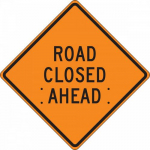 Available Options Accuform FRC318MV 36" x 36" Mesh Vinyl Roll-Up Construction Sign with Legend: "Road Closed Ahead"