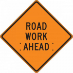 Available Options Accuform FRC319MV 36" x 36" Mesh Vinyl Roll-Up Construction Sign with Legend: "Road Work Ahead"