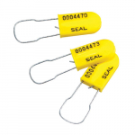 Aluminum cable lock seals have a steel head with six serialized numbers for tracking or inventory.