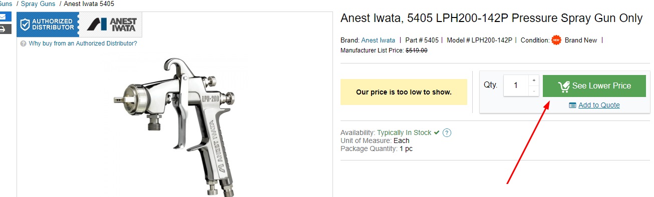 Some manufacturers (such as AgraTronix, Anest Iwata, Bacharach, Flir, Ideal, Scilogex, Reed, Yellow Jacket and others) have a Minimum Advertised Pricing (MAP) policy which stipulates that distributors are contractually required not to "advertise" their product below a specific price level. This is part of our contract with the suppliers to resell their products.