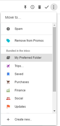 - Select the Move to Inbox and Add Contact option from the drop down menu.