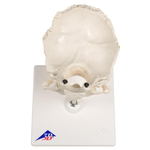 This high quality anatomical replica of the human atlas and axis with the occipital plate is wire mounted together on a removable stand. This human skeleton replica is great for detailed studies of these bones. The atlas and axis with the occipital plate is a great addition to a doctor's office or anatomy classroom.