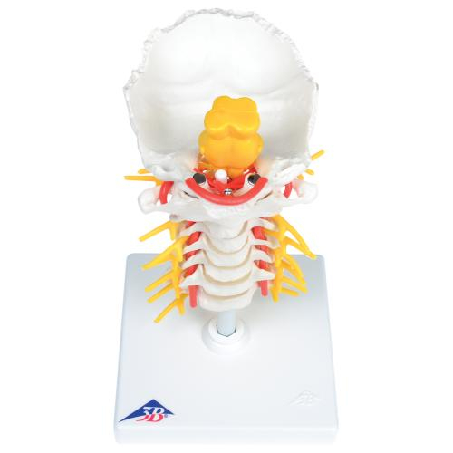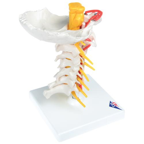This real life replica of the anatomy of the cervical spinal column is a high quality model. Consisting of, occipital plate, the 7 cervical vertebrae with intervertebral discs, cervical nerves, vertebral arteries and spinal cord.