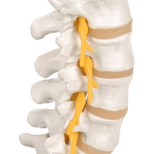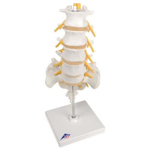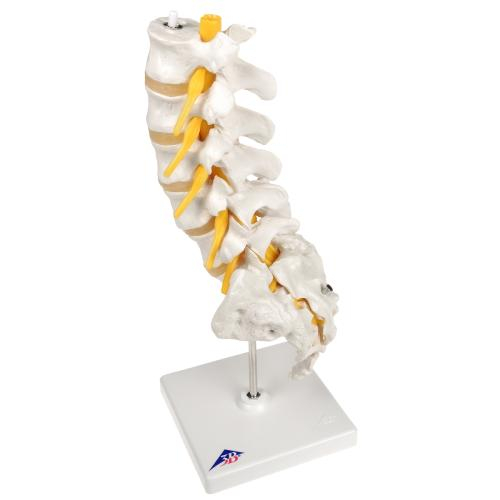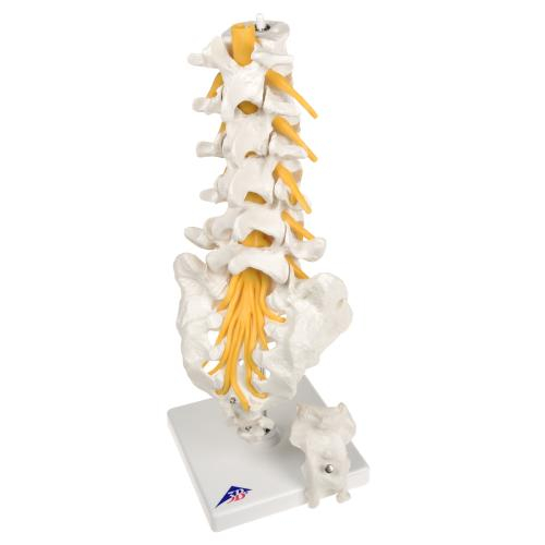 The human lumbar spinal column Consists of the 5 lumbar vertebrae with intervertebral discs, sacrum with flap, coccyx, spinal nerves and dura mater of spinal cord. This high quality spinal replica has accurate anatomical detail for use in any anatomy classroom.