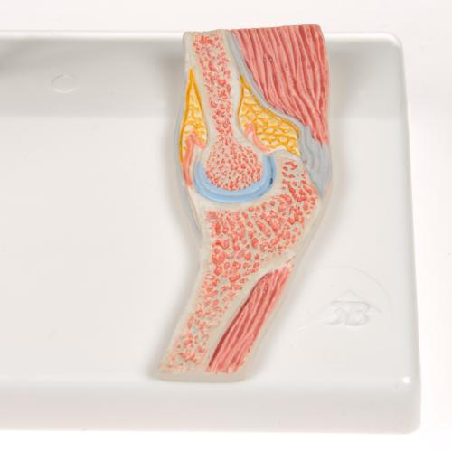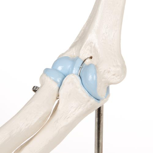 The mini elbow joint has been reduced to a half of the natural size but has kept all of the functionality of larger elbow joint models. In addition to the external anatomical structures of the elbow joint, using the superb new elbow joint cross-section mounted on the base, the medical or teaching professional now has the possibility to explain what is happening from "within" the elbow joint.
