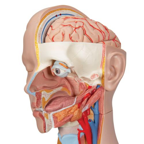 This classic torso is hand-painted true to detail and made of high-quality plastic. All 3B torsos are also developed and modeled in Germany. This human torso has the unique feature of and open neck and back section going from the cerebellum to the coccyx. Vertebrae, intervertebral discs, spinal cord, spinal nerves, vertebral arteries, and many other features are represented in detail is this detailed replica of the human anatomy.