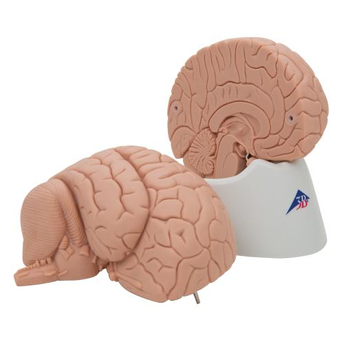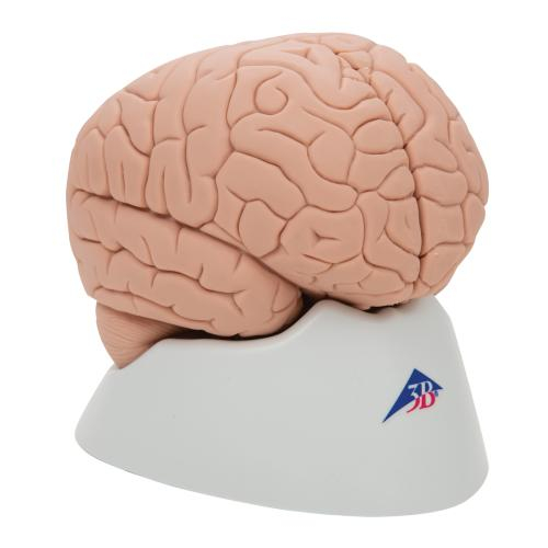This basic brain is medially divided, anatomically accurate, life-size and unbreakable! The structures of the brain are shown in one color, providing and introduction to the human nervous system and anatomy of the brain. Structures of the brain are not labeled or numbered. This introductory brain is delivered on removable base.