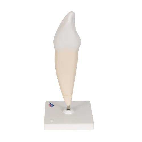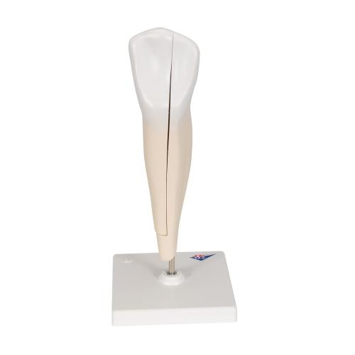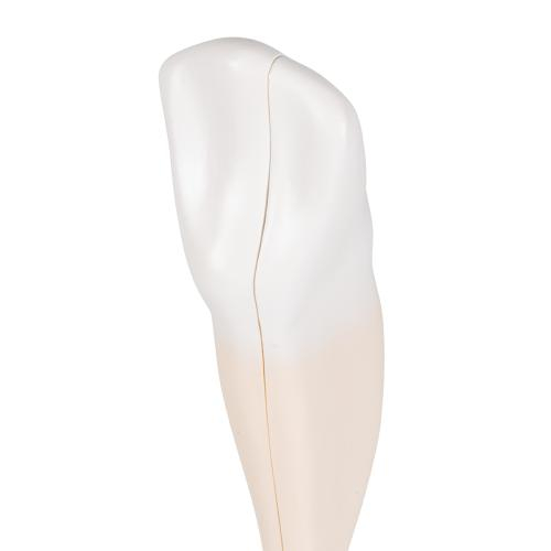 This 2 part lower canine tooth has a longitudinal section. The lower canine tooth is and accurate representation of adult dentition.