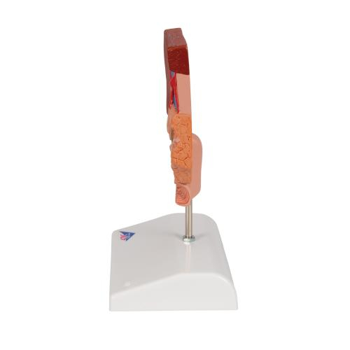 This graphic gallstone model for patient education shows the anatomy of the biliary system and its surroundings in half natural size. Both acute inflammation (cholecystitis) and the tissue changes caused by chronic inflammation can be identified in the gallbladder wall. Gallstones can be found in the following typical locations: