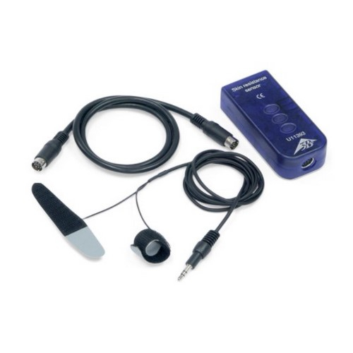 Sensor for measuring the resistance of a person's skin as influenced by external factors (stress, "lie detection"). Designed to conform to the latest safety requirements. Can be used in conjunction with a 3B NETlog unit (U11300) for manual measurements or for processing measurement data when connected to a computer. Includes connector lead with 8 pin miniDIN plugs.