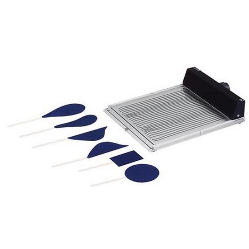 The air flow patterns can be projected on to a wide screen using an overhead projector. Two strings are fastened on one side at equal distances between two glass plates. The strings move according to the air currents between the two glass plates. Bodies of different shapes can be introduced in the air current. The inserted bodies can be moved to various positions in the air current from outside.