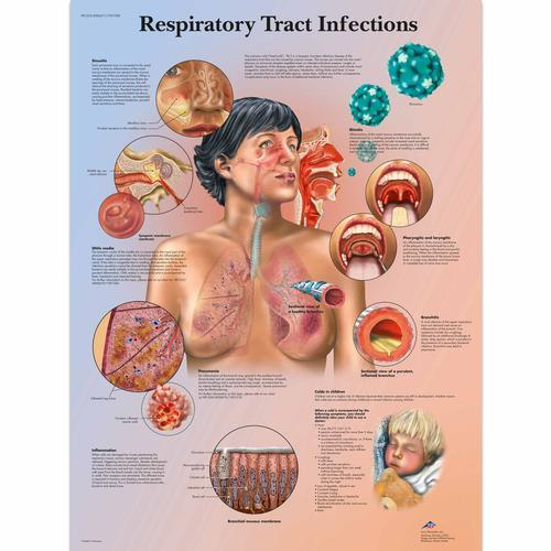 This colorful anatomical chart details human respiratory tract infections. The affected anatomy is shown in this poster along with useful information about viruses that can cause such infections. The anatomy poster is a high quality teaching tool. This thickly laminated anatomical chart is printed on premium glossy (200 g) UV resistant paper and comes with 2 sided lamination (75 micron). It comes in a convenient poster size 50 x 67 cm (20 x 26") and can be written on and wiped off with non permanent markers. The 125 micron lamination ensures the chart does not curl up at the edges and the UV treatment ensures the chart does not get a faded yellow color over time.