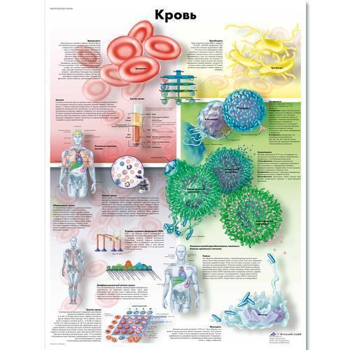 This anatomical chart shows the microanatomy of the blood in colorful detail. Not only are the different types of blood cells illustrated but several diseases of the blood are also discussed on this poster. The anatomy poster is a great teaching tool. This thickly laminated anatomical chart is printed on premium glossy (200 g) UV resistant paper and comes with 2 sided lamination (125 micron, 5.0 Mil) and metal eyelets to make the chart easy to display. It comes in a convenient poster size 50 x 67 cm (20 x 26") and can be written on and wiped off with non permanent markers. The 125 micron lamination ensures the chart does not curl up at the edges and the UV treatment ensures the chart does not get a faded yellow color over time.