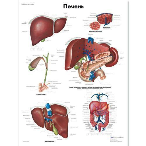 The anatomy of the human liver and its location in the body is detailed in this colorful anatomical chart. The anatomy of related organs are displayed along with the liver. This poster is a great tool for teaching the role of the liver in the human body. Use it in a doctor's office or in a classroom.
