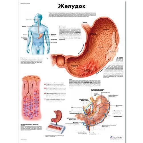 This colorful anatomical chart illustrates the human stomach. The full anatomy of the stomach is shown, including the Microanatomy of the cells lining the stomach. Information on some diseases and pathologies of the stomach are also present. The stomach chart is a great addition to any classroom or doctor's office. This thickly laminated anatomical chart is printed on premium glossy (200 g) UV resistant paper and comes with 2 sided lamination (125 micron, 5.0 Mil) and metal eyelets to make the chart easy to display. This poster comes in a convenient poster size 50 x 67 cm (20 x 26") and can be written on and wiped off with non permanent markers. The 125 micron lamination ensures the chart does not curl up at the edges and the UV treatment ensures the chart does not get a faded yellow color over time.