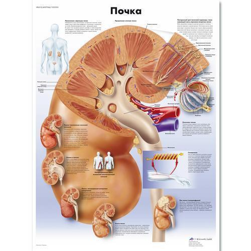 This colorful anatomical chart depicts the human kidneys in detail. The basic function and anatomy of the kidneys are included. The poster also gives information on some common pathologies of the kidney. This thickly laminated anatomical chart is printed on premium glossy (200 g) UV resistant paper and comes with 2 sided lamination (125 micron, 5.0 Mil) and metal eyelets to make the chart easy to display. It comes in a convenient poster size 50 x 67 cm (20 x 26") and the poster can be written on and wiped off with non permanent markers. The 125 micron lamination ensures the chart does not curl up at the edges and the UV treatment ensures the chart does not get a faded yellow color over time.