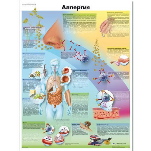 This colorful anatomical chart details the different types of allergies. From pollen, to bug bites, to drug allergies this anatomy poster is full of educational information. Look at allergies from a microscopic point of view! This thickly laminated anatomical chart is printed on premium glossy (200 g) UV resistant paper and comes with 2 sided lamination (125 micron, 5.0 Mil) and metal eyelets to make the chart easy to display. It comes in a convenient poster size 50 x 67 cm (20 x 26") and can be written on and wiped off with non permanent markers. The poster's 125 micron lamination ensures the chart does not curl up at the edges and the UV treatment ensures the chart does not get a faded yellow color over time.