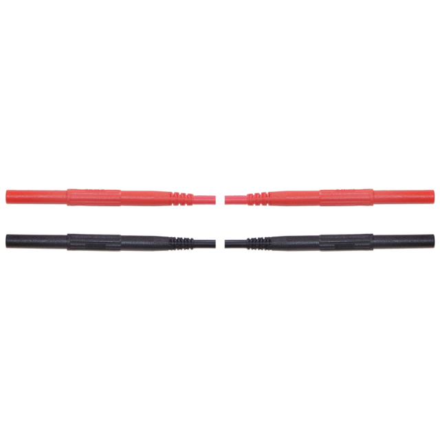 Pair of highly flexible leads with dia. 4mm safety plugs and rigid insulating sleeve on both ends; one red and one black.