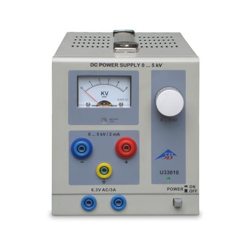 Universally applicable, floating, high-voltage power supply with built-in, high voltage resistant transformer to supply the heater voltage for electron tubes. Continuously adjustable high voltage, safe to touch, with passive current limitation and analogue voltage display. Unit poles can be connected to protected earth, but it is not center tapped.