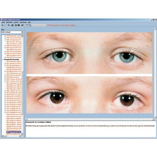 Introduction to the principles of molecular genetics. The focus lies on the application of new techniques in medical genetics and in genetic counseling. Furthermore, subject matters such as population genetics, mutations, imprinting, blood group systems and appearance of tumors will be discussed. Subject matters in the last section include principles of genetic counseling and prenatal diagnostics, biopsy of chorionic villi, amniocentesis (fetal blood sampling). Reasons for seeking genetic counseling, effects of damaging to the fetus, risk calculation, consanguinity, genetics of behavior, and many examples derived from findings in research on twins and the genetic trees of trait bearers. New, extraordinarily high-quality images facilitate visual instruction, while detailed accompanying texts place this series at the highest level of modern teaching standards.