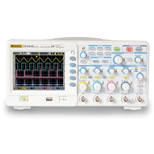 Digital Oscilloscope 4x60 MHz. Capable of simultaneously displaying four independent channels in colour, this digital oscilloscope offers the following functions: Storage and recall of measured signals, automatic measurement of up to 22 parameters, mathematical operations including fast Fourier transformation, delayed sampling, digital filtering. Including four Probes, software and USB cable.