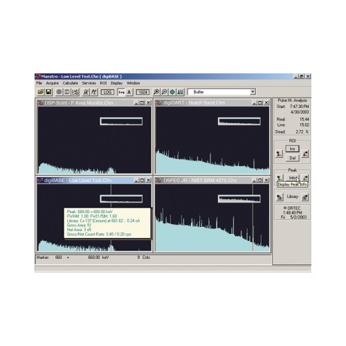 NaI Operating and Evaluation Unit. Complete apparatus for operation and evaluation, designed for measurement and comprehensive evaluation of energy spectra. Consists of a 14-pin connector stage with a high-voltage power supply for the photomultiplier of an NaI(Tl) scintillation detector. Possesses an integrated amplifier with pulse-shaping capability and digital signal Processing for four-channel analysis. The power supply for the complete unit is Provided via the USB port of a PC. Includes MAESTRO 32 measurement and evaluation software for a PC.The measurement and evaluation software has a versatile graphic user interface, supports identification of the measured radiation energies with the aid of integrated libraries and allows for the setting of all measurement parameters, including the high-voltage supply, from the PC.