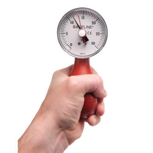 The Baseline squeeze bulb dynamometer is the inexpensive way to reliably measure hand and finger strength. The dynamometer is available with and without a maximum force indicator (reset) that remains at the maximum reading until reset. Unit is calibrated in PSI.