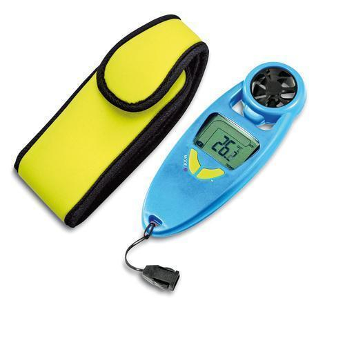 Waterproof anemometer for measuring wind speed. Indication of wind chill temperature based on the combination of air temperature and wind speed. Indication of mean and maximum speeds. Wind curves on the Beaufort scale. Supplied with lockable cover.