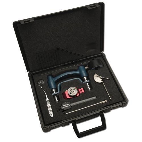 The Baseline Digital 7 piece Hand evaluation set includes all the instruments needed for a full hand evaluation and stored in a carrying case. Grip strength is measured by the hydraulic hand dynamometer (300Ib.) and pinch strength by the mechanical pinch gauge (60Ib.). Other measurements are made with the stainless steel goniometer (2"), 2 point discriminator with 3rd point, Wartenberg pinwheel, finger circumference gauge and functional finger motion gauge.