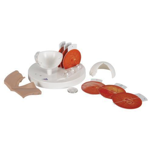 This human eye model by 3B Scientific shows an eye enlarged by a factor of 5. It is a perfect tool to assists the healthcare professional in educating patients in the anatomy and changes of the human eye. The easy to use switchable and didactically simplified representations of the retina and lens make it possible to explain clearly to the patient the typical changes that occur in a healthy eye due to common diseases. There are various eye problems that can affect one “s vision, and with this model you can easily demonstrate the following diseases.