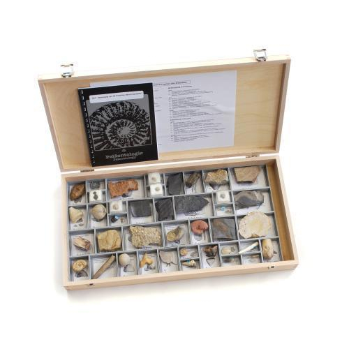 These collections contain carefully selected animal and plant fossils from all the important groups that are representative of certain geological time periods. These examples, placed in chronological order, give an overview of the development of life from the Precambrian to the Quaternary period. Each item is stored individually in boxes placed in chronological order, with a label, the date and details of where the item was found. The fossils come in a wooden box with a detailed accompanying booklet in English, German and French. The collections were created especially to give an introduction to palaeontology. The items delivered may vary depending on availability. We will ensure that we provide at least one example from each period.