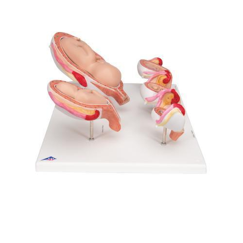 This series shows the most important stages of development of embryo or foetus. All models are mounted together on a base.
