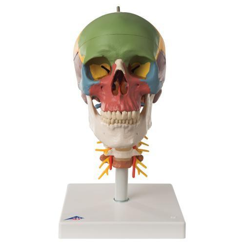 With this Human Skull Model by 3B Scientific you are sure to have the highest quality skull model on the market. It was carefully handmade from unbreakable plastic, using 19 distinctive colors to represent the shapes and relationships of the various bone plates of the skull.