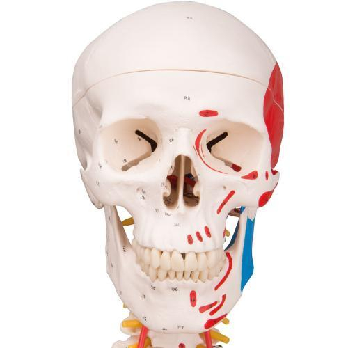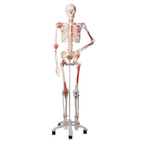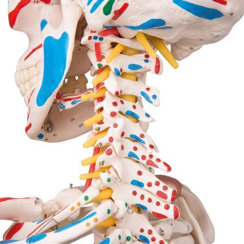 Sam offers all the advantages of a 3B Scientific skeleton. With Sam, you can also demonstrate the movements of the skull via the head joints, and thanks to the fully flexible spine, you can adjust the model to place it in natural body postures. The unique combination of muscle origins and insertions, the numbered bones, flexible ligaments and flexible spine with a slipped disc between the 3rd and 4th lumbar vertebrae clearly the show medical and anatomical interest of this top model's more than 600 structures.