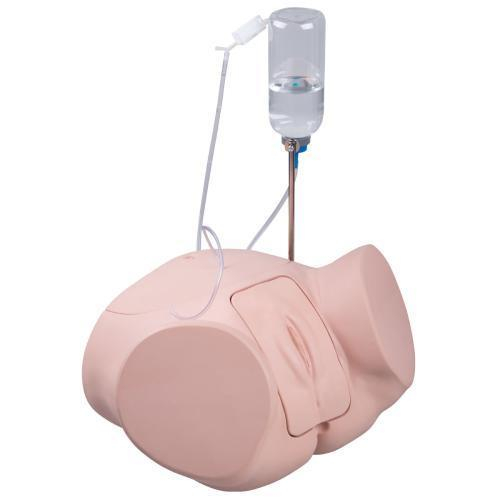 If it is no longer possible to carry out catheterization through the urethra, a suprapubic catheter can be inserted. On the PRO version, a suprapubic catheter has already been put in place, and the student can practice cleaning it and taking care of it with the trainer.