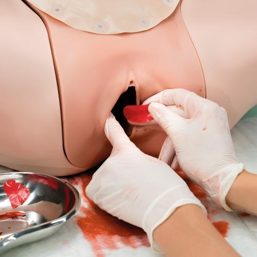 The postpartum hemorrhage trainer offers accurate anatomy, including ischial spines, pubic bones and sacrum. For a realistic feel and texture in addition to a life-like softness, the vaginal canal and postpartum cervix have been made in SKINlike high-quality silicone.