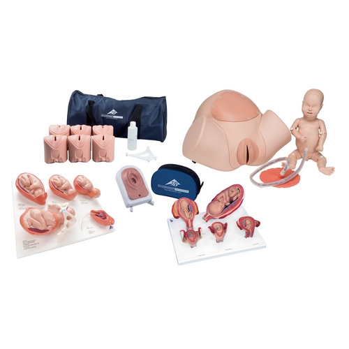 Intro to Obstetrics Lab Pro Kit. The Obstetrics Lab Kit to study obstetrics from conception to delivery! This is the advanced version of Intro to OB Lab Kit, with even more Products than the Basic version! See the growth and development from an embryo to a fetus in detaiLed life-size models mounted together on a base. Study the stages of birth from a closed cervix all the way to the fetus navigating through the pelvis and delivery of the placenta. Get hands-on practice of identifying birth Progress, delivering babies in normal or complicated scenarios, and performing episiotomies of various severities using 3B Scientific simulators. Great for any Obstetrics education class.