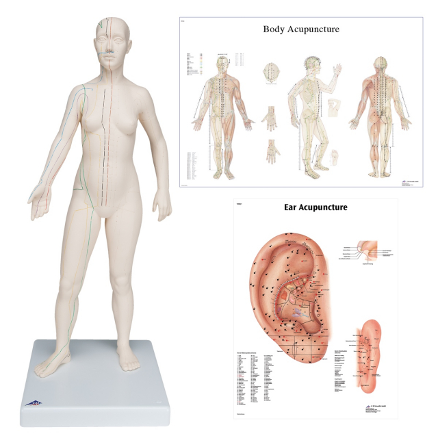 3B Scientific, 3011936, Female Acupuncture Model with Body and Ear Charts